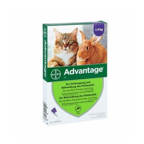 Pre upotrebe obavezno pročitati uputstvo za upotrebu leka. U slučaju neželjenih efekata konsultujte se sa vašim veterinarom. U našoj apoteci možete se posavetovati oko primene Advantage. U skladu sa zakonskom regulativom proizvod se ne prodaje preko Interneta već isključivo u veterinarskoj apoteci.Dostupan samo u veterinarskoj apoteci. Pre primene pažljivo pročitajte uputstvo o veterinarsko medicinskom proizvodu. O rizicima i nuspojavama posavetujete se s veterinarom.