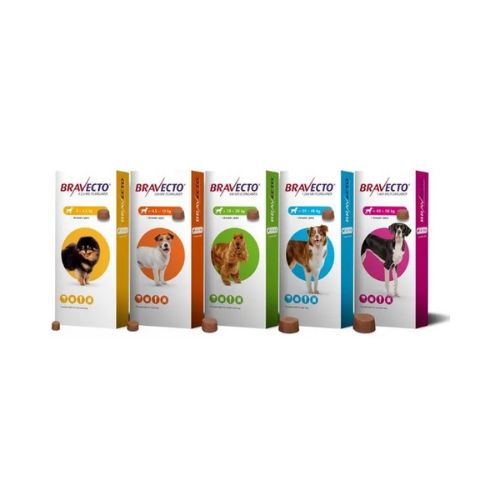 BRAVECTO tablete su dostupne u više vrsta u zavisnosti od težine psa: