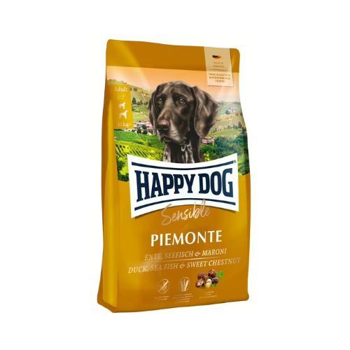 HAPPY DOG Piemonte 4 kg je kompletna suva hrana za odrasle pse koji imaju problema sa varenjem, kožnim iritacijama ili intolerancijom na žitarice. Ova hipoalergena formula sadrži samo proverene, lako svarljive sastojke – patku i ribu kao izvore proteina, dok su krompir i slatki kesten prirodni, bezglutenski ugljeni hidrati.