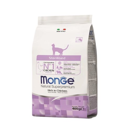 Monge Cat Sterilised sa piletinom je kompletna suva hrana namenjena sterilnim mačkama koje zahtevaju pažljivo kontrolisanu ishranu.
