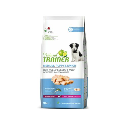 Trainer Natural Medium Puppy Piletina je kompletna suva hrana za štence srednjih rasa (od 11 do 30 kg kada odrastu), razvijena za potrebe u fazi intenzivnog rasta – od 2. do 12. meseca života.